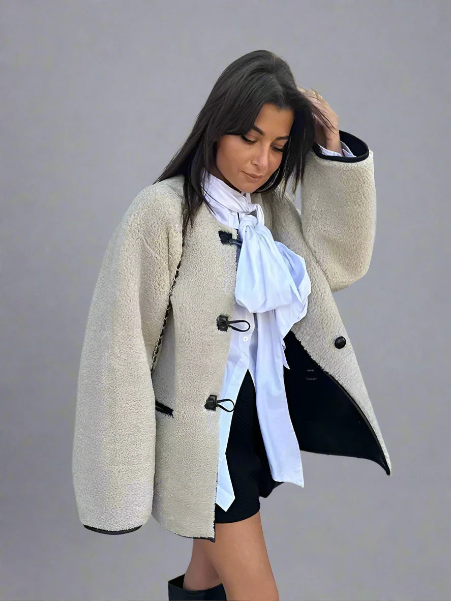 Wrap yourself in warmth and style with the Gabrielle Luxe Lamb Wool Coat. This 2024 edition combines high fashion with ultimate comfort, making it an essential for cold-weather streetwear. The O-neck design and full sleeves provide a timeless silhouette, while the single-breasted closure adds a touch of elegance. Made from thick, high-quality lamb wool, this coat is perfect for keeping you cozy and chic during autumn and winter.
