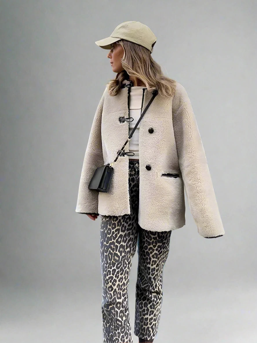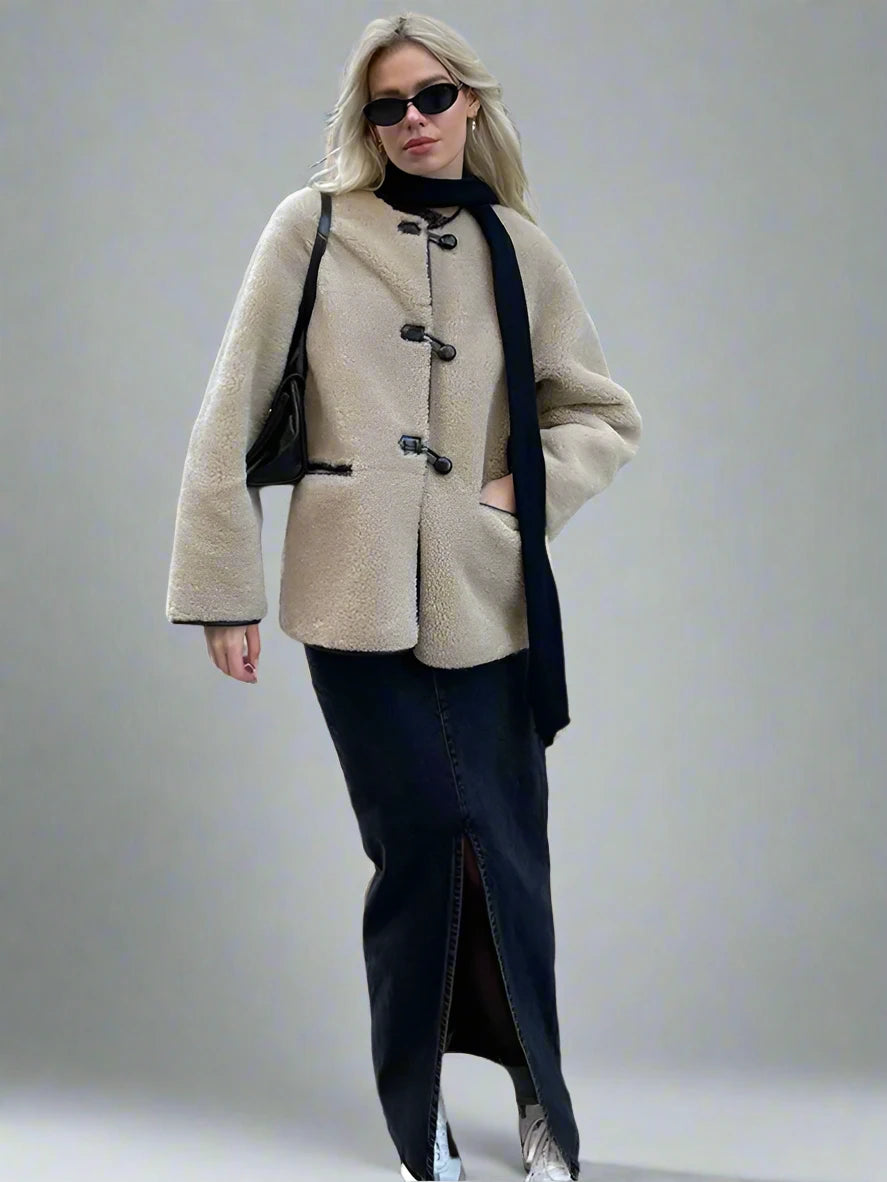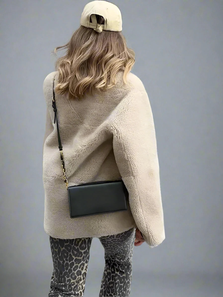 Pair the Gabrielle Luxe Lamb Wool Coat with your favorite boots and accessories for a head-turning streetwear look. Embrace the perfect blend of fashion and function that makes every step in the cold stylishly warm.